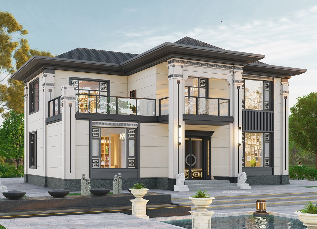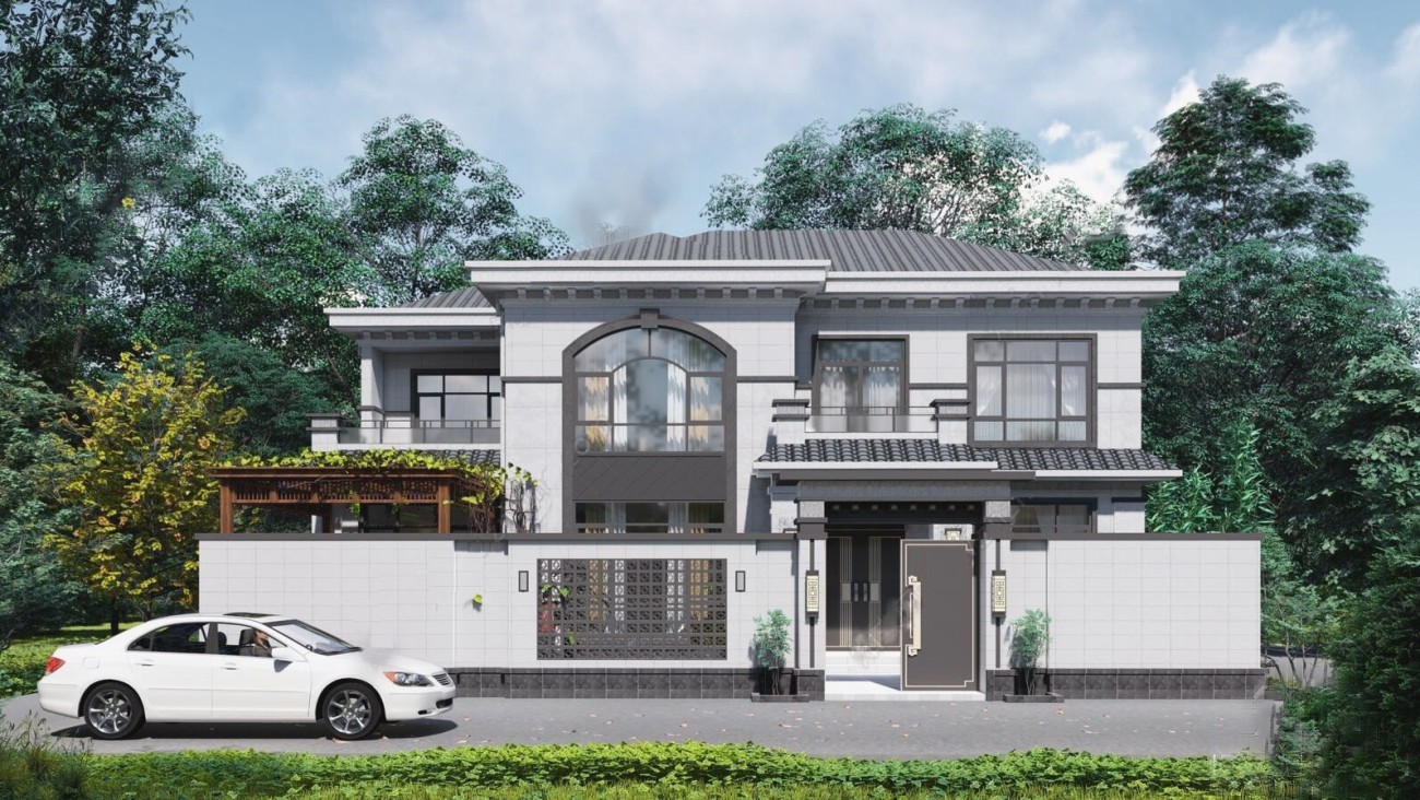 黑河011 两层新中式(15.43x12.66米)-【易设计】