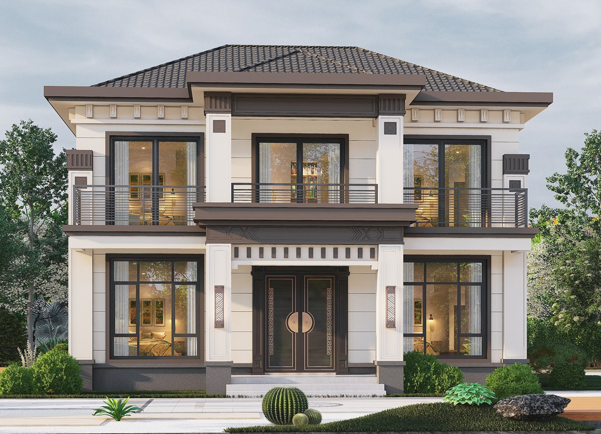 黑河014 两层新中式(11x12.5米)-【易设计】