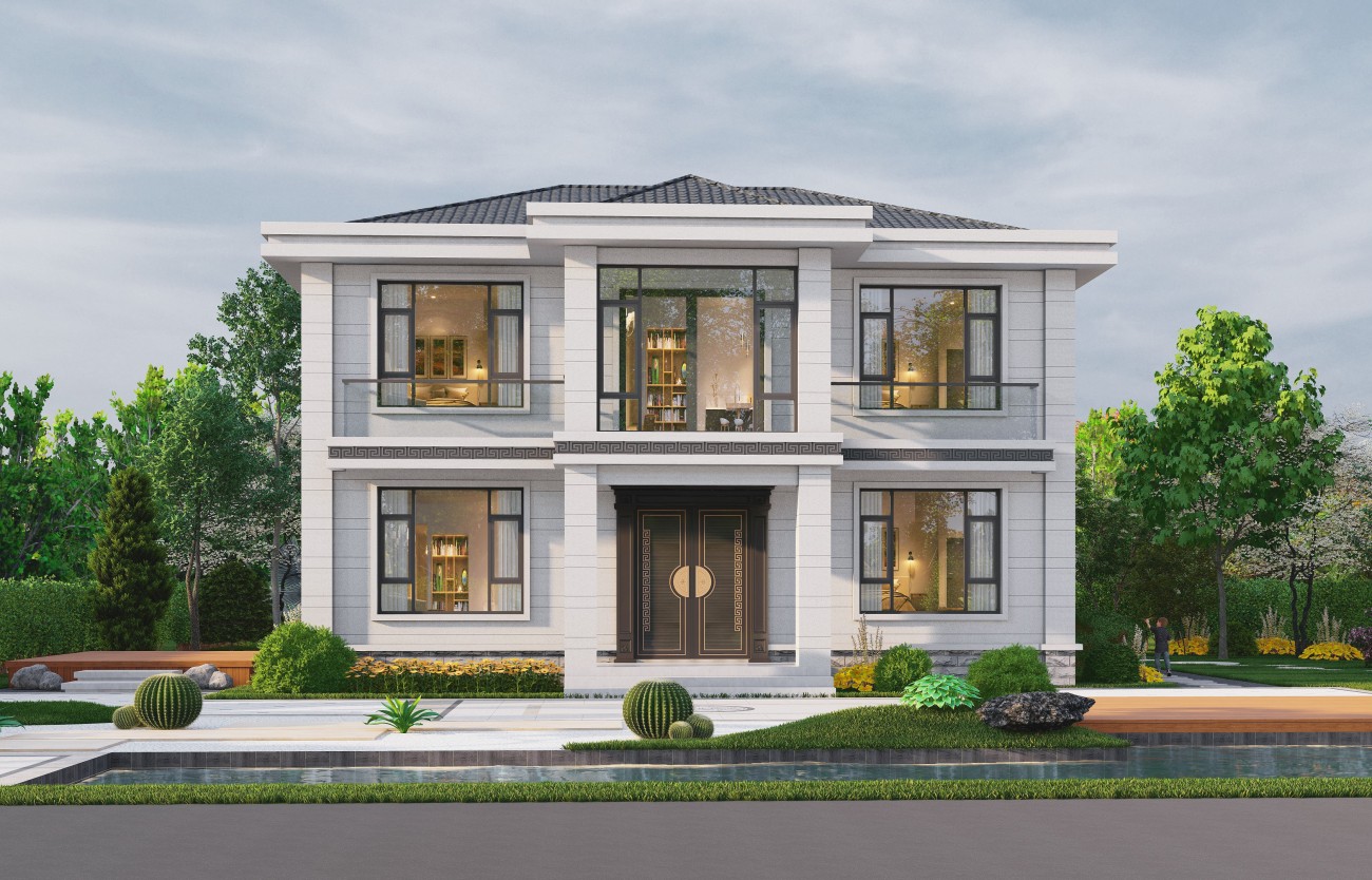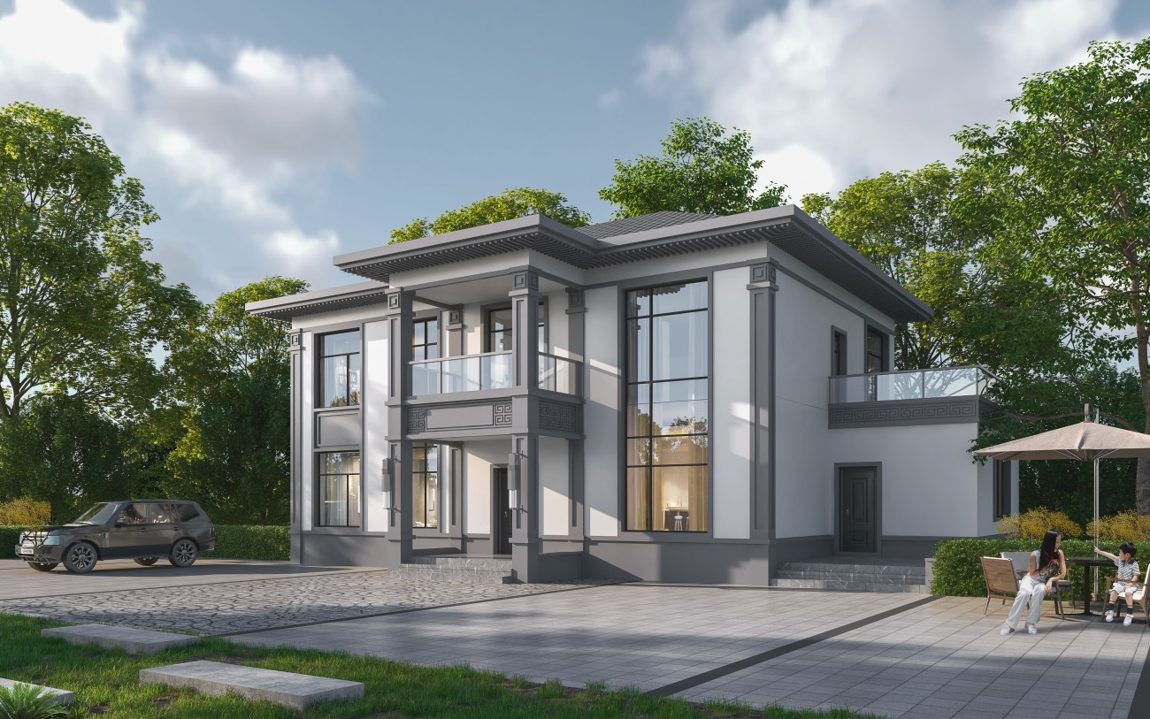 黑河005 两层新中式(11.36x11.76米)-【易设计】